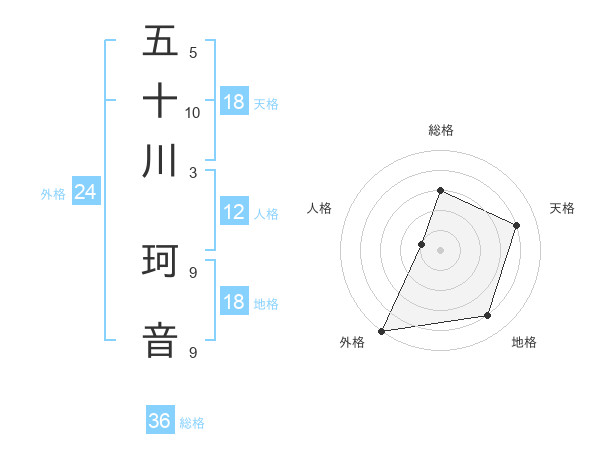 五十川 珂音さんの総格は36画の3点!