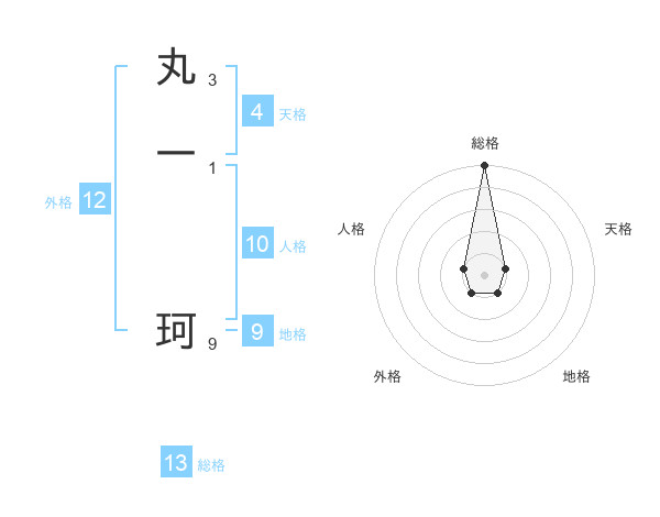 丸一 珂さんの総格は13画の5点!