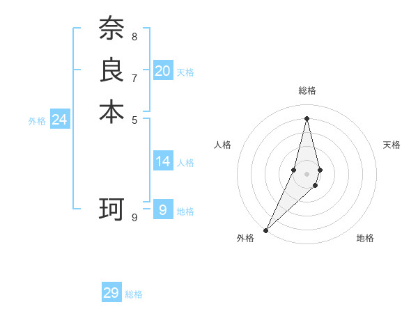 奈良本 珂さんの総格は29画の4点!