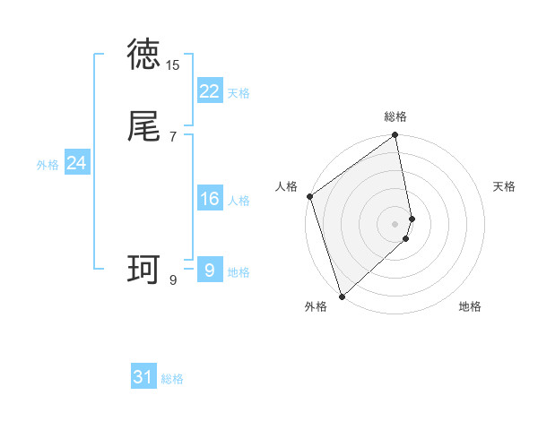 徳尾 珂さんを姓名の画数から五運を鑑定