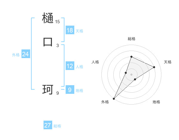 樋口 珂さんの総格は27画の3点!