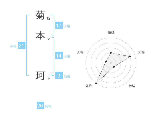 菊本 珂さんの外格は21画の5点!