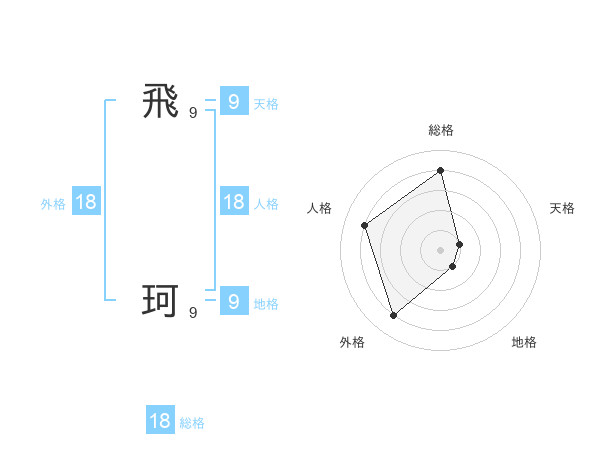 飛 珂さんの総格は18画の4点!