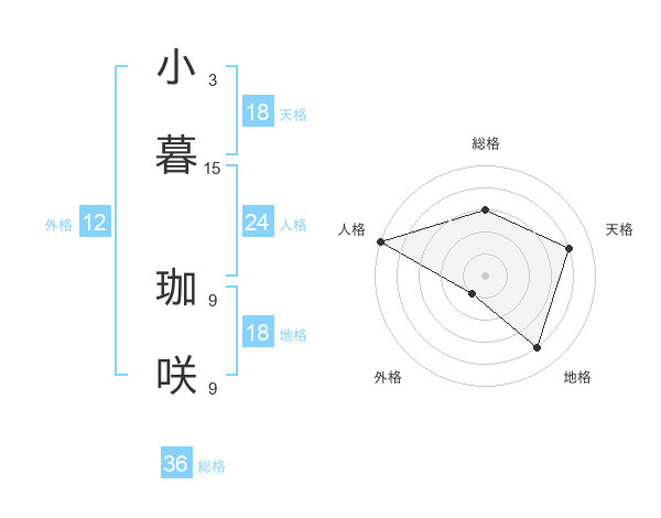 小暮 珈咲さんの天格は18画の4点!