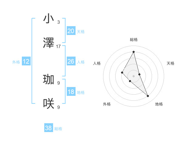 小澤 珈咲さんを姓名の画数から五運を鑑定