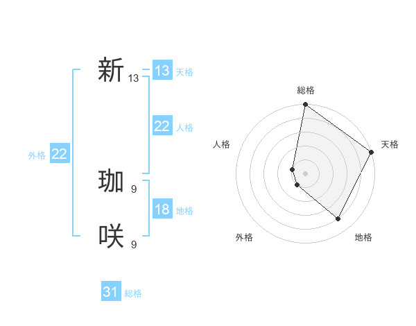 新 珈咲さんの総格は31画の5点!