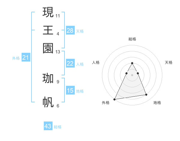 現王園 珈帆さんを姓名の画数から五運を鑑定