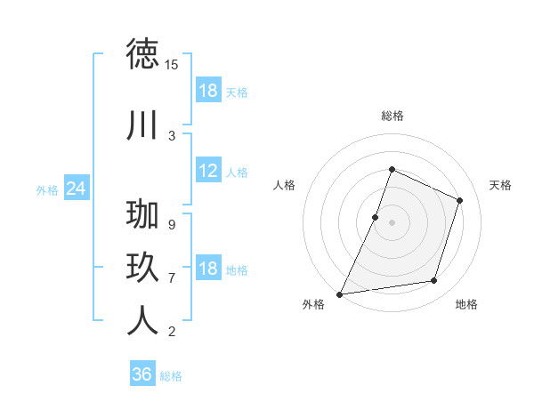 徳川 珈玖人さんの天格は18画の4点!