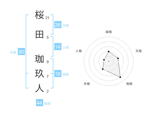 桜田 珈玖人さんを姓名の画数から五運を鑑定