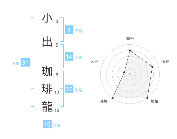小出 珈琲龍さんを姓名の画数から五運を鑑定