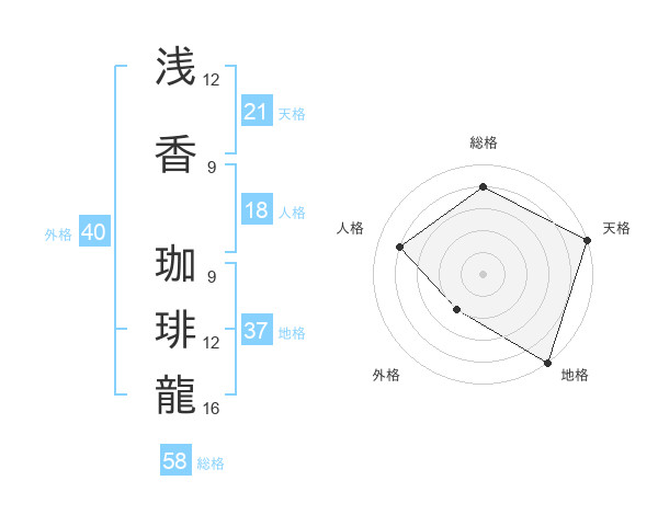 浅香 珈琲龍さんを姓名の画数から五運を鑑定