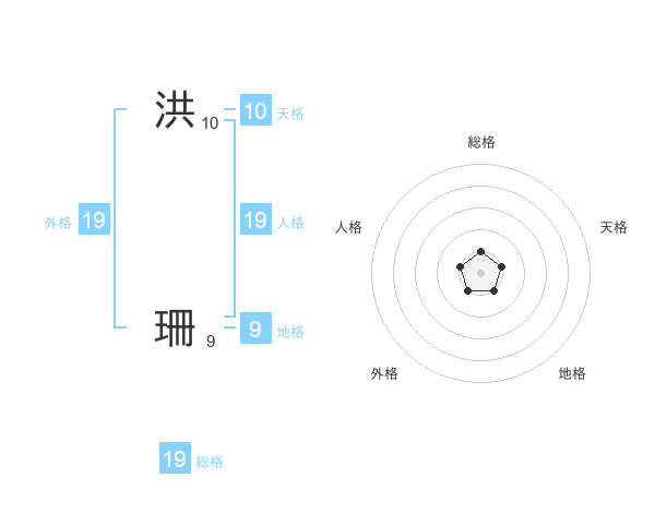 洪 珊さんの総格は19画の1点!