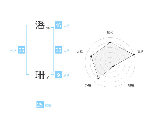 潘 珊さんの総格は25画の4点!