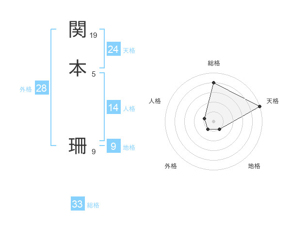 関本 珊さんの天格は24画の5点!