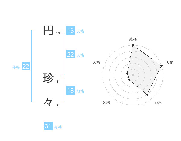 円 珍々さんの天格は13画の5点!