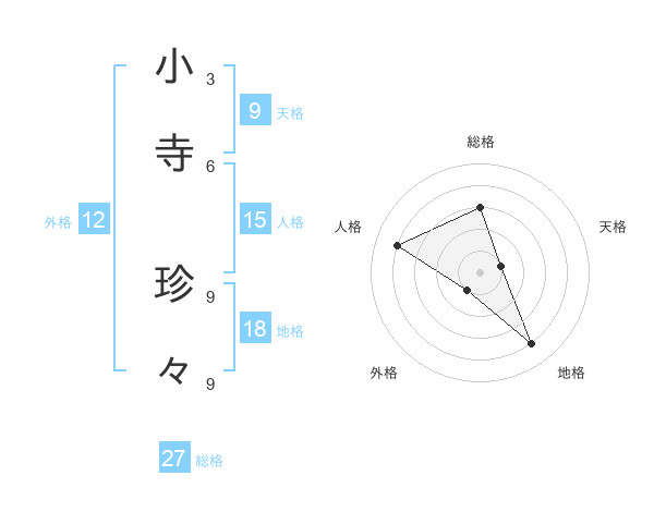小寺 珍々さんを姓名の画数から五運を鑑定