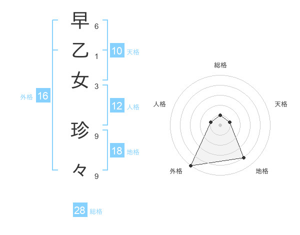 早乙女 珍々さんを姓名の画数から五運を鑑定