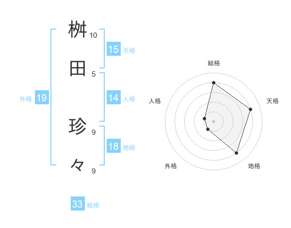 桝田 珍々さんを姓名の画数から五運を鑑定