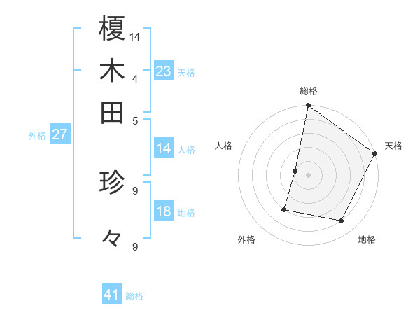 榎木田 珍々さんを姓名の画数から五運を鑑定