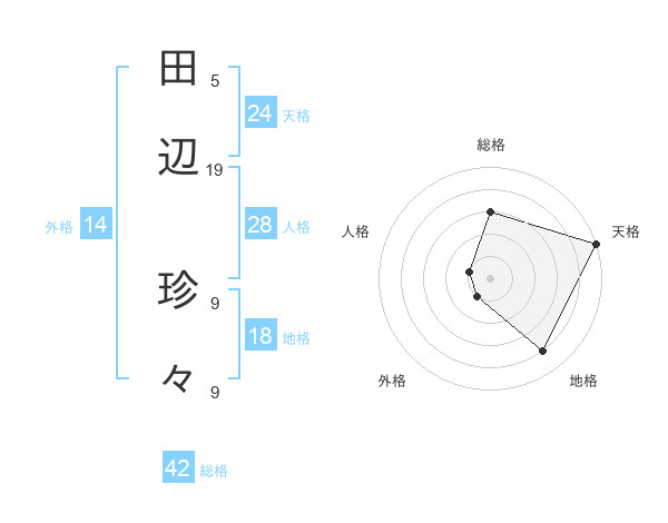 田辺 珍々さんを姓名の画数から五運を鑑定