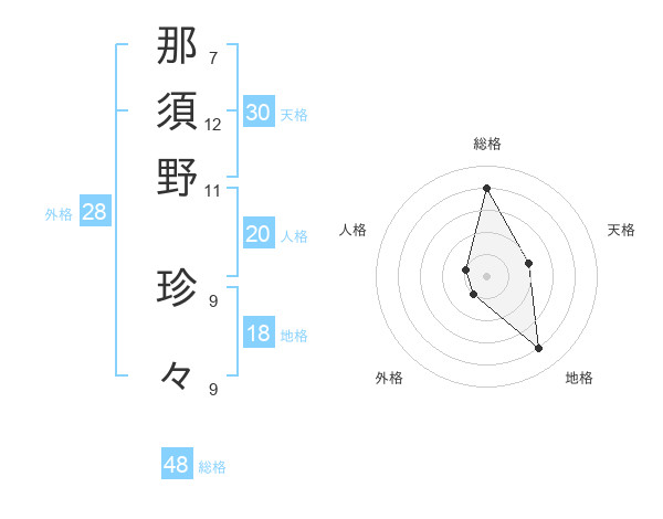 那須野 珍々さんを姓名の画数から五運を鑑定