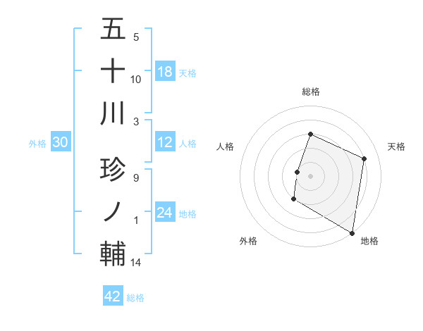 五十川 珍ノ輔さんの地格は24画の5点!