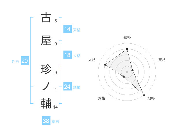 古屋 珍ノ輔さんを姓名の画数から五運を鑑定