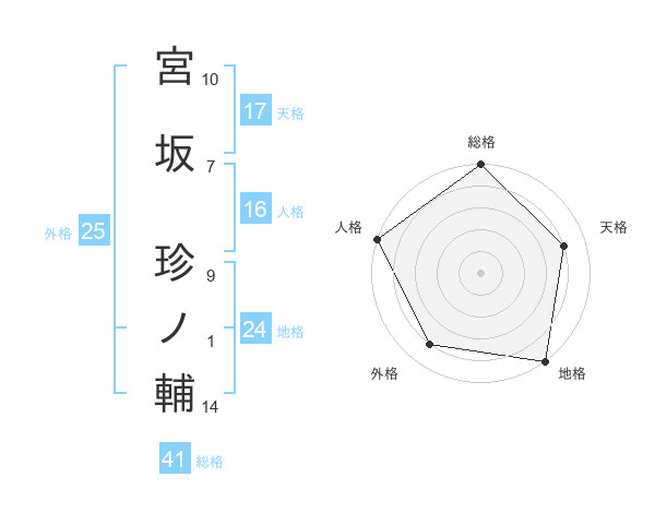 宮坂 珍ノ輔さんの天格は17画の4点!