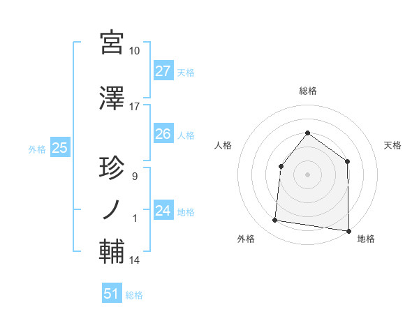 宮澤 珍ノ輔さんの総格は51画の3点!