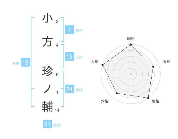 小方 珍ノ輔さんを姓名の画数から五運を鑑定