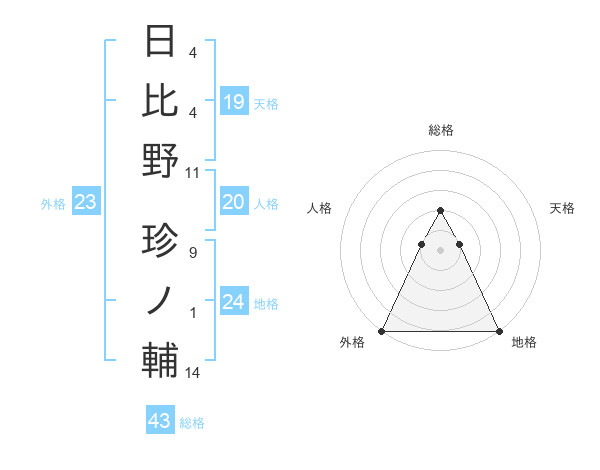 日比野 珍ノ輔さんを姓名の画数から五運を鑑定