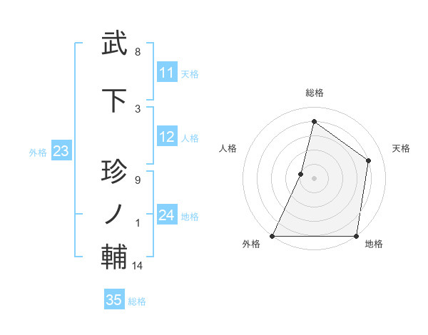 武下 珍ノ輔さんを姓名の画数から五運を鑑定