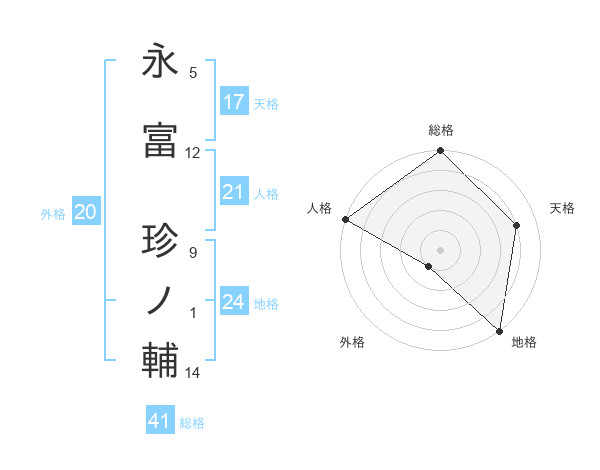 永富 珍ノ輔さんを姓名の画数から五運を鑑定