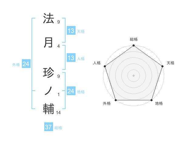 法月 珍ノ輔さんを姓名の画数から五運を鑑定
