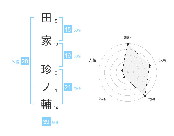 田家 珍ノ輔さんの総格は39画の5点!