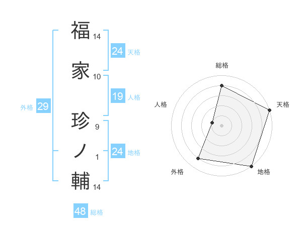 福家 珍ノ輔さんを姓名の画数から五運を鑑定