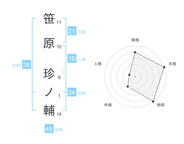 笹原 珍ノ輔さんを姓名の画数から五運を鑑定