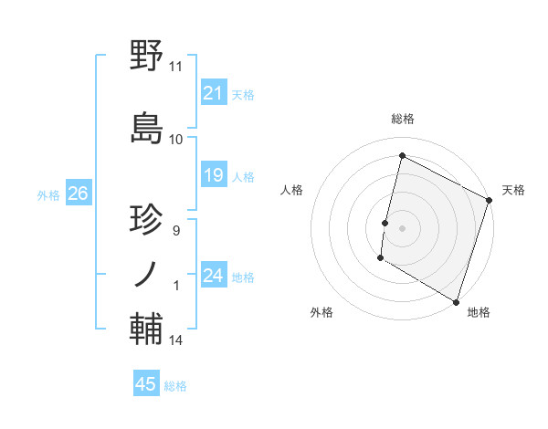 野島 珍ノ輔さんの総格は45画の4点!
