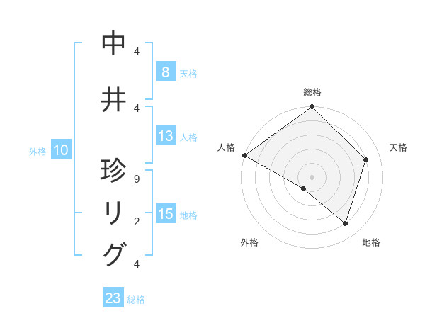 中井 珍リグさんの総格は23画の5点!
