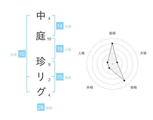 中庭 珍リグさんの総格は29画の4点!