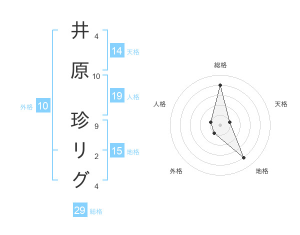 井原 珍リグさんを姓名の画数から五運を鑑定