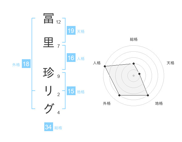 冨里 珍リグさんを姓名の画数から五運を鑑定