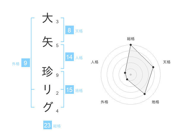 大矢 珍リグさんを姓名の画数から五運を鑑定