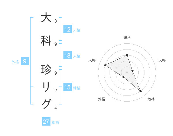 大科 珍リグさんを姓名の画数から五運を鑑定