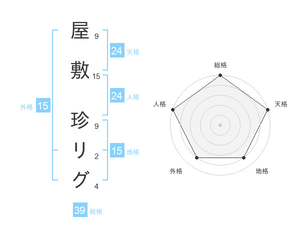 屋敷 珍リグさんの総格は39画の5点!