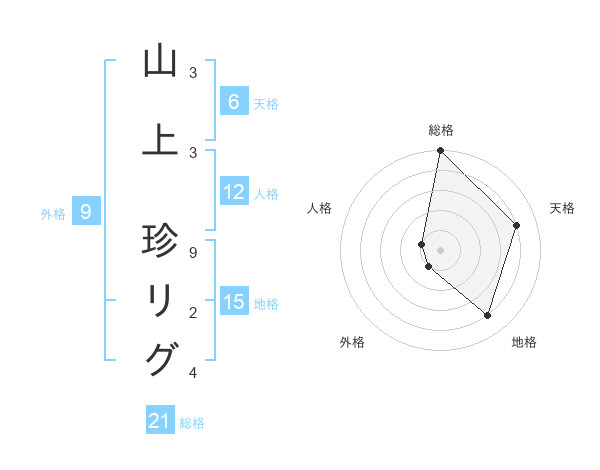 山上 珍リグさんを姓名の画数から五運を鑑定