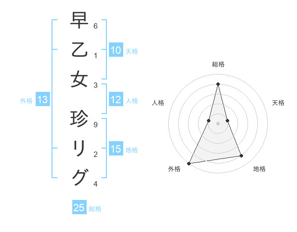 早乙女 珍リグさんを姓名の画数から五運を鑑定