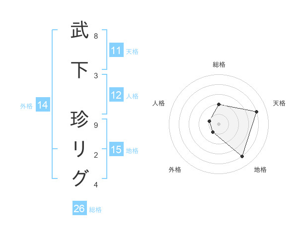 武下 珍リグさんの総格は26画の2点!