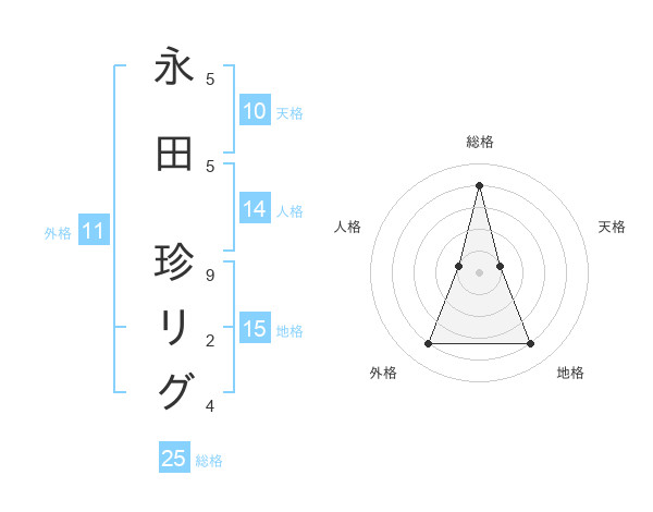 永田 珍リグさんを姓名の画数から五運を鑑定