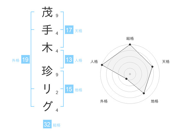 茂手木 珍リグさんを姓名の画数から五運を鑑定